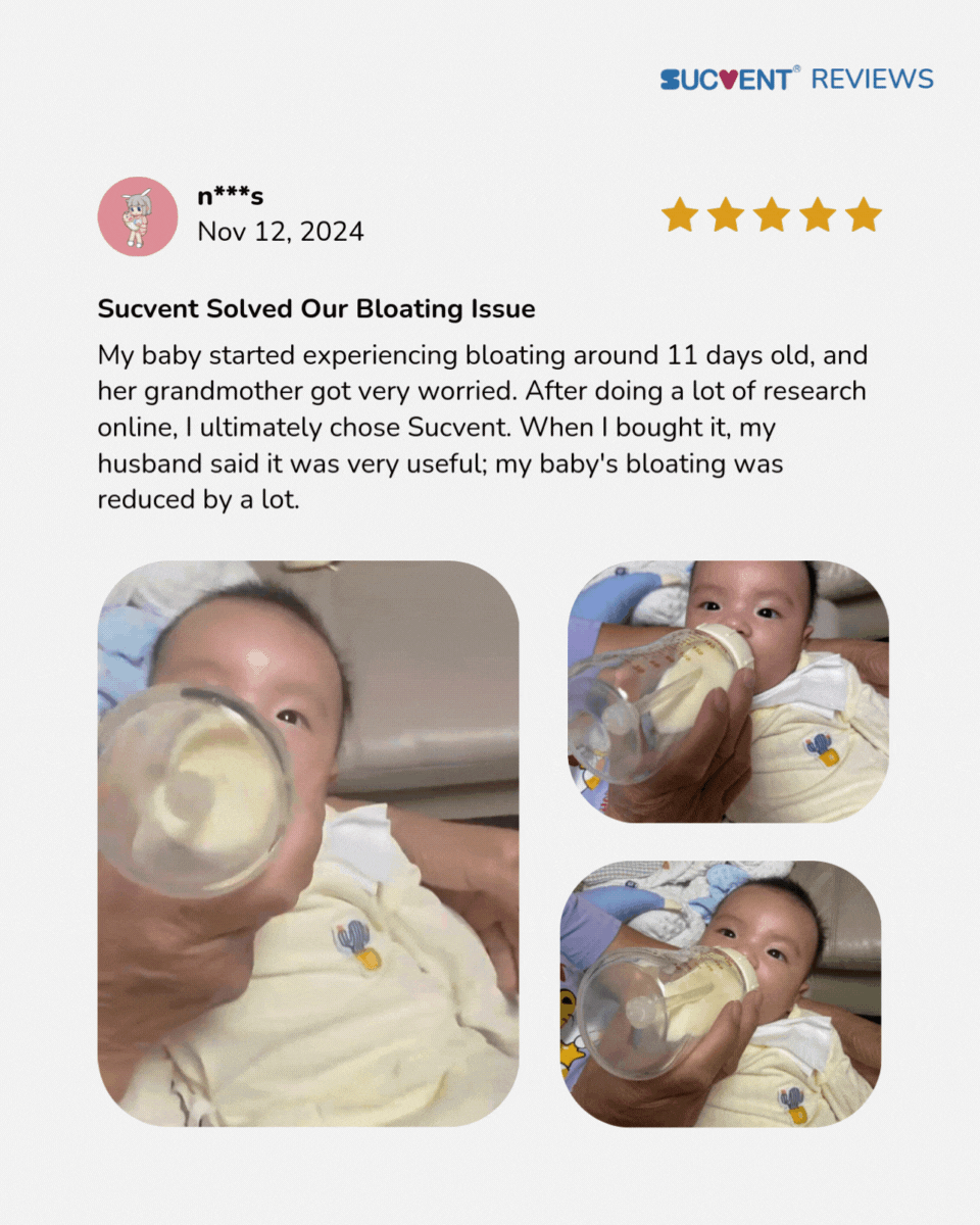 Engineered with a unique 3-level anti-colic system, Sucvent bottles significantly reduce gas, bloating, and the risk of choking, ensuring a smoother, more peaceful feeding experience.